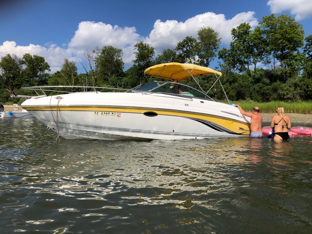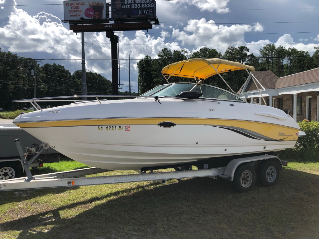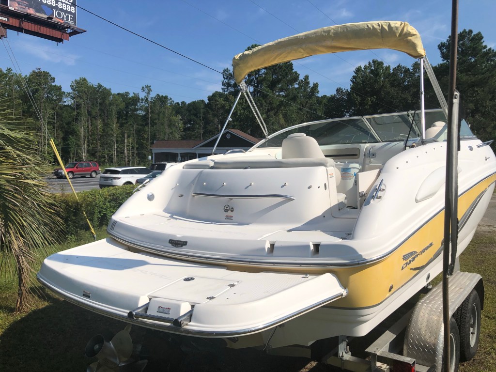 RECENT NEW 5.7 MERCRUISER , BRAVO III OUT DRIVE , STAINLESS STEEL PROPS , BIMINI TOP , CUSTOM COVER , GPS , DEPTH FINDER , STEREO , PORTA POTTI , SLEEPS 2 , INCLUDES ALUMINUM TRAILER…. AND WAY TOO MUCH TO LIST ….BOOK VALUE WITH OPTIONS AND TRAILER APPROX . $ 25, 000…..BUT WILL TAKE $ 22,995….CALL ,,,843-696-2276