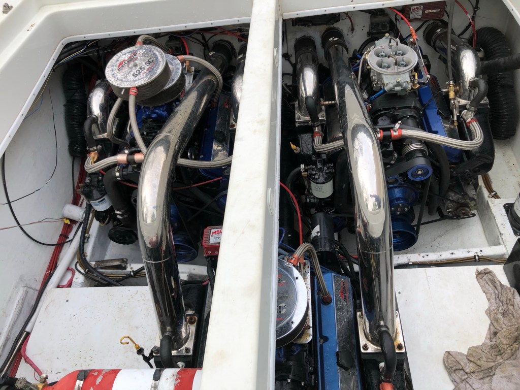 TRIPLE MERCRUISER 525 SC ENGINES , CUSTOM WRAP , SLEEPS 6 , FULL KITCHEN / GALLEY , BATHROOM / HEAD WITH SHOWER , AIR CONDITIONING , SHORE POWER , MASSIVE STEREO SYSTEM , TV AND WAY TOO MUCH TO LIST…. WITH MATCHING CUSTOM TRAILER …..NEW IT WOULD BE IN THE THREE QUARTER OF A MILLON DOLLAR RANGE FOR A COMPRABLE BOAT LIKE THIS….BOOK VALUE APPROACHING $100 K… BUT WILL TAKE $ 89,995….CALL 843-696-2276