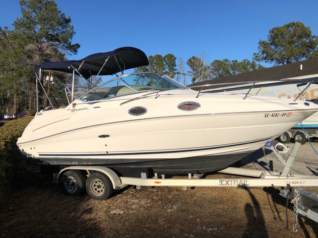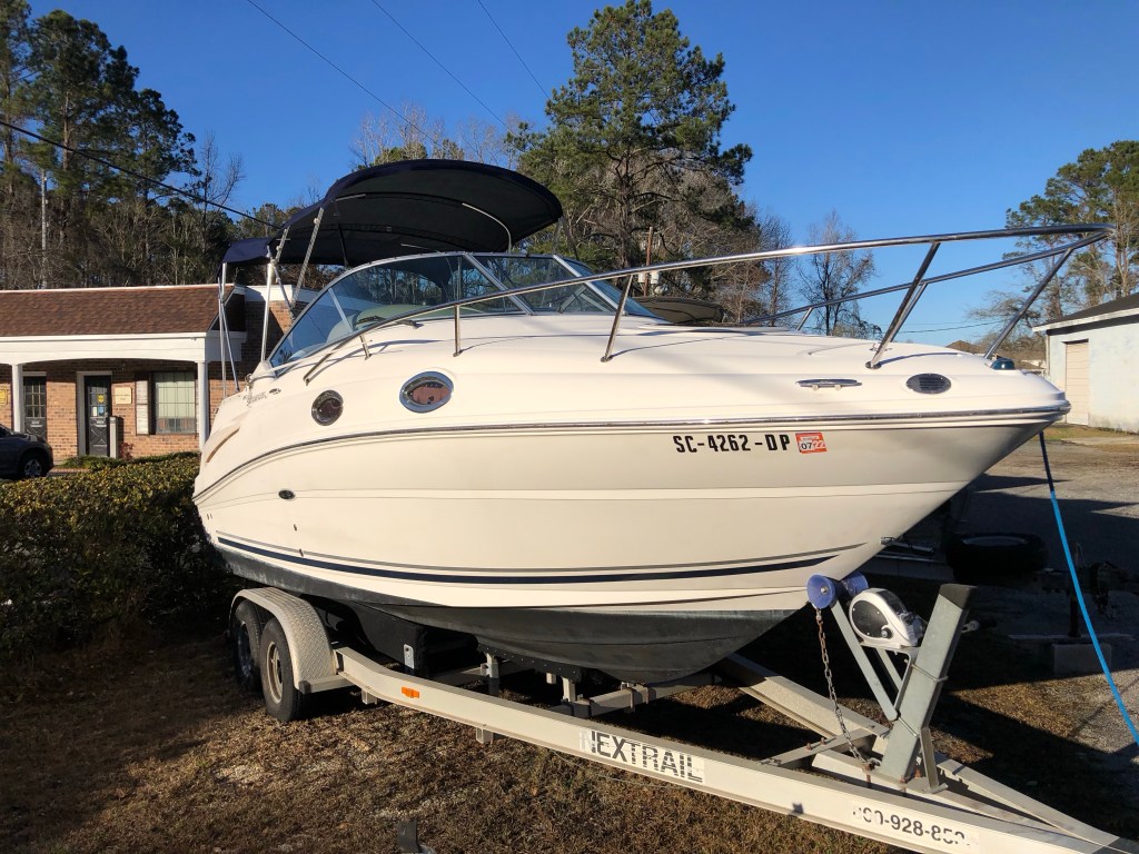 2007 240 , AFT CABIN , SLEEPS 4 , 5.0 MERCRUISER , 217 HOURS , GPS , VHF RADIO , STEREO , DEPTH FINDER , TRIM TABS , BIMINI TOP , FULL CANVAS ENCLOSURE , KITCHEN / GALLEY WITH REFRIGERATOR , SINK , MICROWAVE , BATHROOM / HEAD WITH SHOWER , INCLUDES ALUMINUM TRAILER …….BOOK VALUE WITH OPTIONS AND TRAILER APPROX. $ 42 K ….BUT WILL TAKE $ 39,995 ….. ZERO DOWN / LOW MONTHLY PAYMENT WITH APPROVED CREDIT….CALL…..843-696-2276