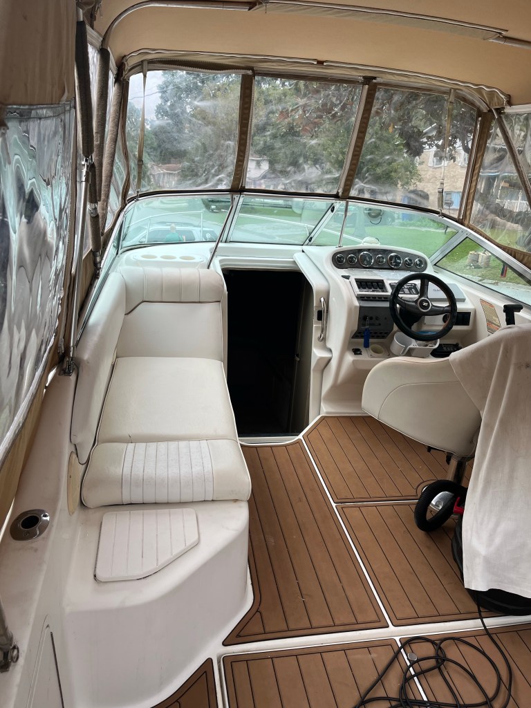 VERY CLEAN BOAT , FULL CANVAS ENCLOSURE , SLEEPS 4 IN SPACIOUS CABIN , ENCLOSED BATHROOM WITH SHOWER , GALLEY/ KITHCHEN , TRIM TABS , STEREO , DEPTH FINDER , CUSTOM SNAP ON COVER , BIMINI TOP , TAMDEN AXLE ALUMINUM TRAILER….AND MUCH MORE …….$18,995….ZERO DOWN WITH APPROVED CREDIT ….CALL 843 -696-2276